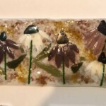 Larger scope projects are a little different. A larger installation such as tiles, art for a space, particular floral sculptures, etc. get what I call an art interview. It’s where I spend time getting an idea of what it is you are looking for specifically. I need to visit the space or see photos of the space in order to get started thinking about your piece. I ask questions about your vision. If you are like some of my customers, you might not have a vision and so I ask questions about what you like to spend time doing, what pieces of my artwork you are drawn to, how do you spend your down time and maybe other questions I think of in the moment. I like to see the space and visit it if at all possible to get an idea of what your style and color choices are. I want your art to fit into your home and work with your “vibe”. If I am not able to travel to you (i.e. you don’t live within reasonable driving distance of West Lafayette, IN) I can meet with you virtually using internet technology.